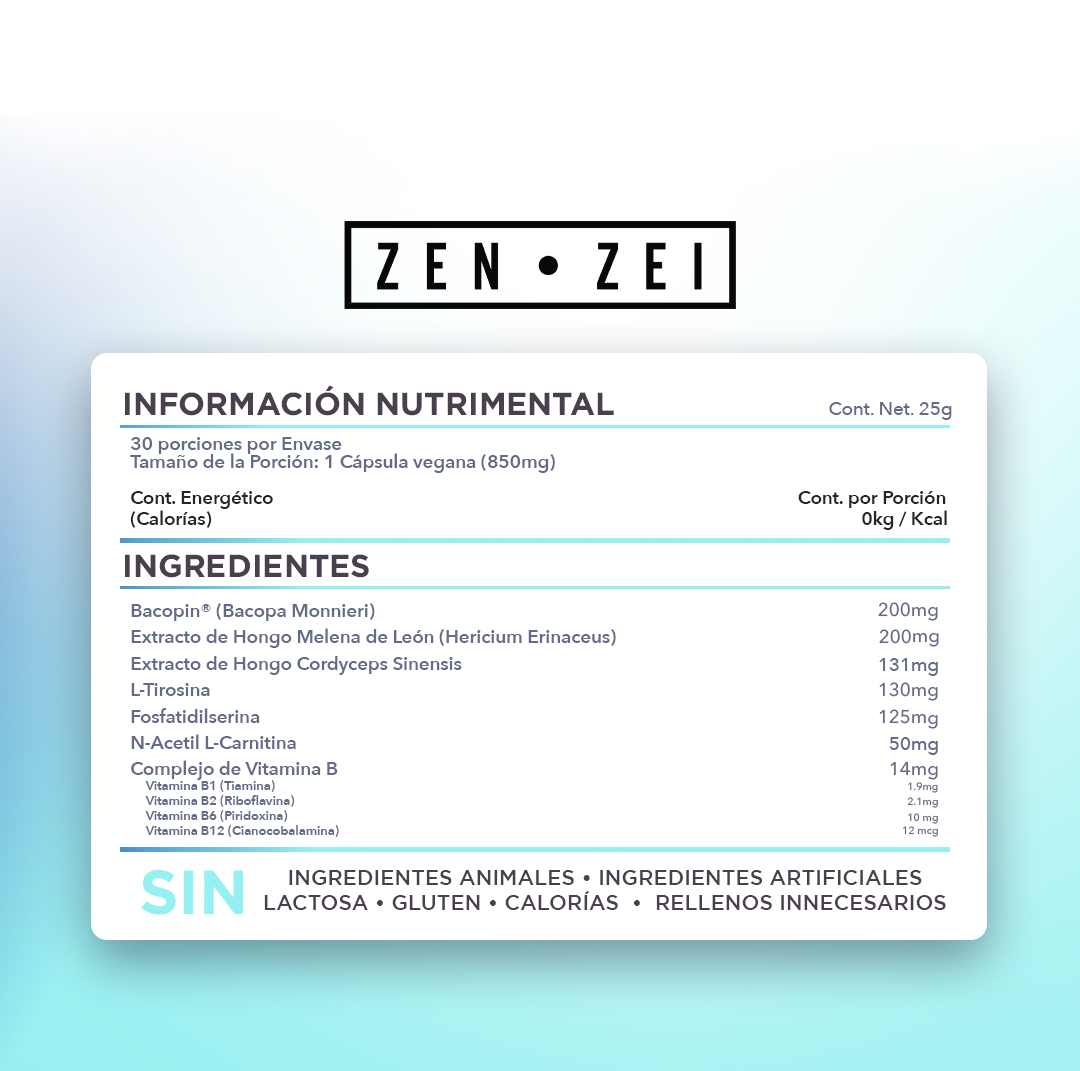 Mente clara — Combinación de suplementos para obtener una excelente concentración y claridad mental, con ayuda de sus Adaptógenos se obtendrá un estado de relajación óptimo durante el día.